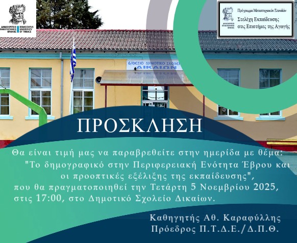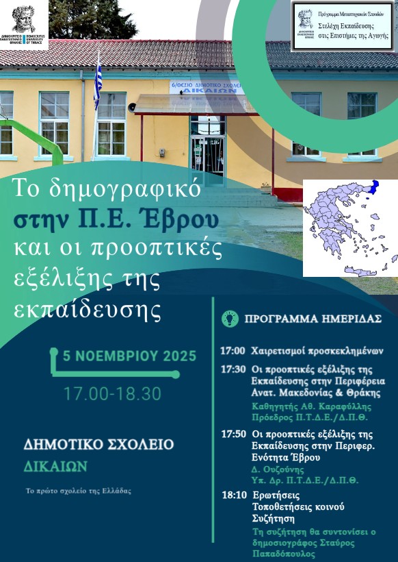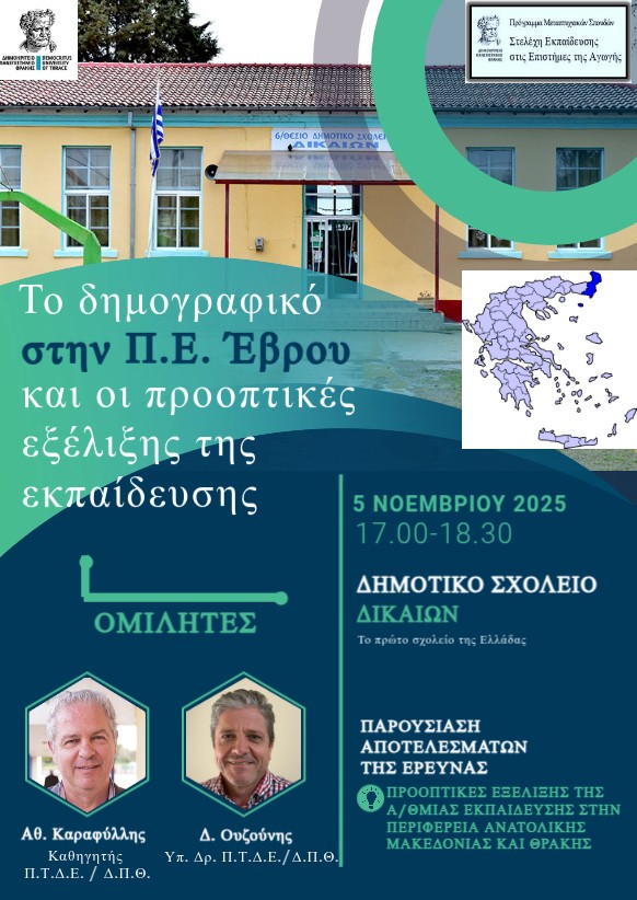 Επιστημονική ημερίδα: “Το δημογραφικό στην Π.Ε. Έβρου και οι προοπτικές εξέλιξης της εκπαίδευσης”